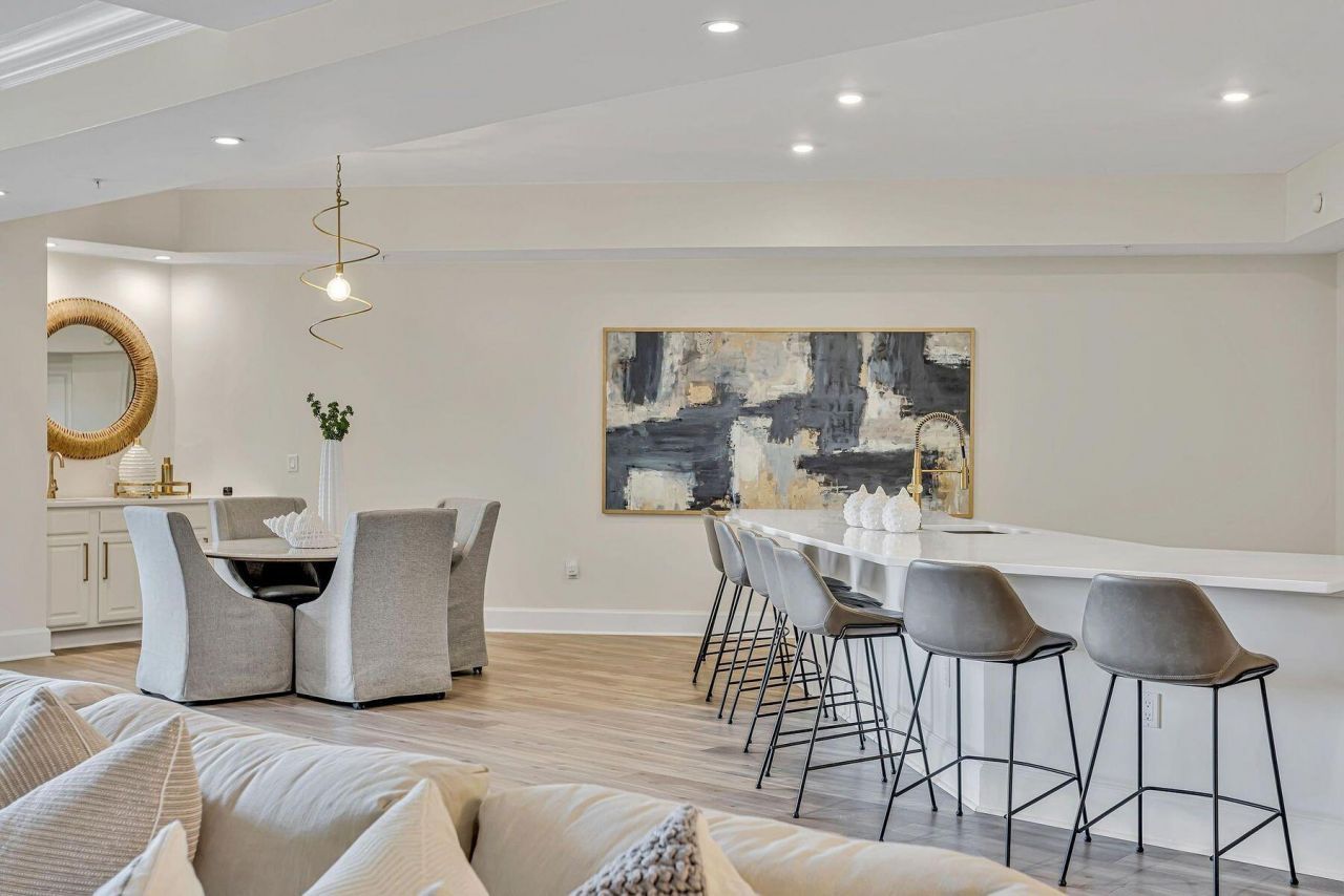 Experience an unparalleled blend of luxury, privacy, and resort-style living in this extraordinary four-bedroom, four-bath residence spanning more than 4,000 square feet in Sanctuary at Redfish. This immaculate condo lives like a single-family home while offering the lock-and-leave convenience of a premier gated retreat, perfectly positioned between the Gulf of Mexico and the rare coastal dune lake, Big Redfish Lake. The grand main living space welcomes you with multiple seating areas, a soft neutral palette, coffered ceilings, and oversized windows that flood the space with natural light and serene views of the resort-style pool below. Designed for both entertaining and effortless everyday living, the open-concept layout flows seamlessly into a gourmet kitchen featuring an extra-long island with seating for eight, quartz countertops, custom cabinetry, and premium stainless steel appliances, with two dedicated dining spaces anchored by a sculptural chandelier that elevates every gathering. Each of the four bedrooms is thoughtfully designed and generously scaled. The primary suite serves as a private sanctuary with its own seating area, luxurious ensuite bath, and private balcony access, while a second upstairs bedroom also offers balcony access for an additional outdoor retreat. The remaining guest suites include stylish furnishings, spacious layouts, and access to well-appointed baths, including a charming bunk suite ideal for families. The spa-inspired primary bath showcases a freestanding soaking tub, walk-in shower, dual vanities, and custom built-ins for a true luxury experience. Enjoy tranquil vistas from the living room and upper balconies overlooking the expansive pool complex and the preserved natural landscape surrounding Big Redfish Lake, offering a rare sense of privacy while remaining moments from the energy and amenities of 30A. Sanctuary at Redfish enhances this exceptional residence with an expansive four-pool oasis, private beach access via a signature pontoon boat shuttle across Big Redfish Lake, a scenic walking path to the gulf, a fitness center, beautifully landscaped grounds, lakefront fire pits, poolside cabanas, grilling stations, 24-hour gated security, and climate-controlled owner storage. This rare combination of space, serenity, and resort-level amenities creates a unique lake-to-beach lifestyle found only at Sanctuary at Redfish, delivering an elevated coastal haven where elegance and comfort meet the natural beauty of 30A.